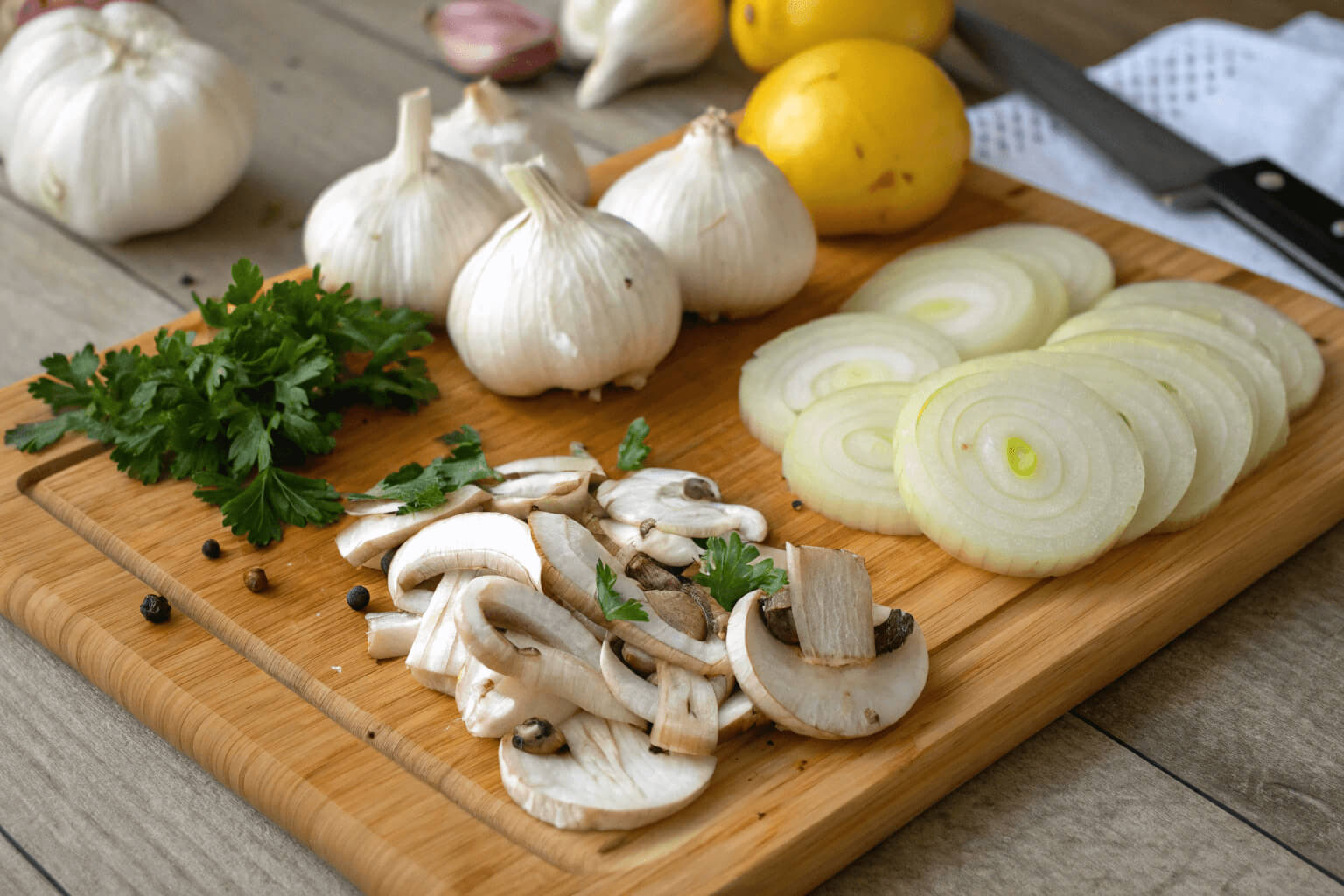 - Garlic, Onion, Mushrooms